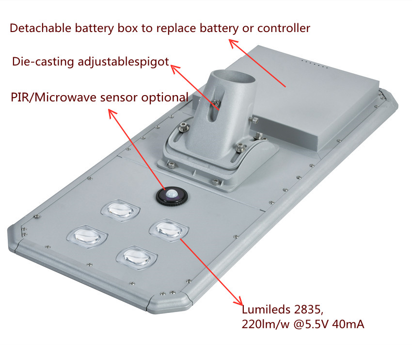 20w 30w 40w 60w all in one solar street light with detachable battery box