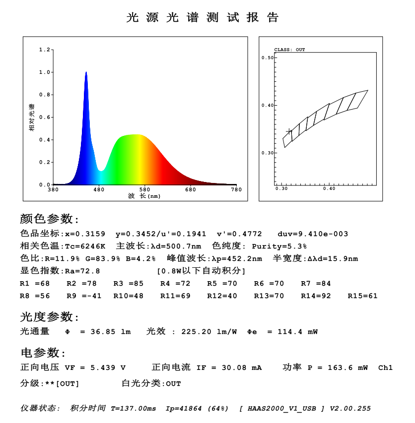 Philips Lumileds 2835 reach 225lm/w under condition @5.44V 30mA, 0.163W