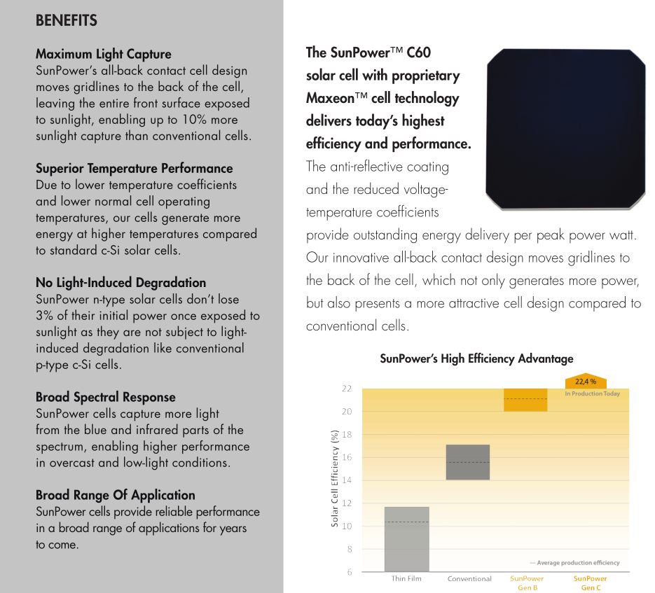 - High quality mono-crystalline solar panel, Sunpower cell solar panel optional.