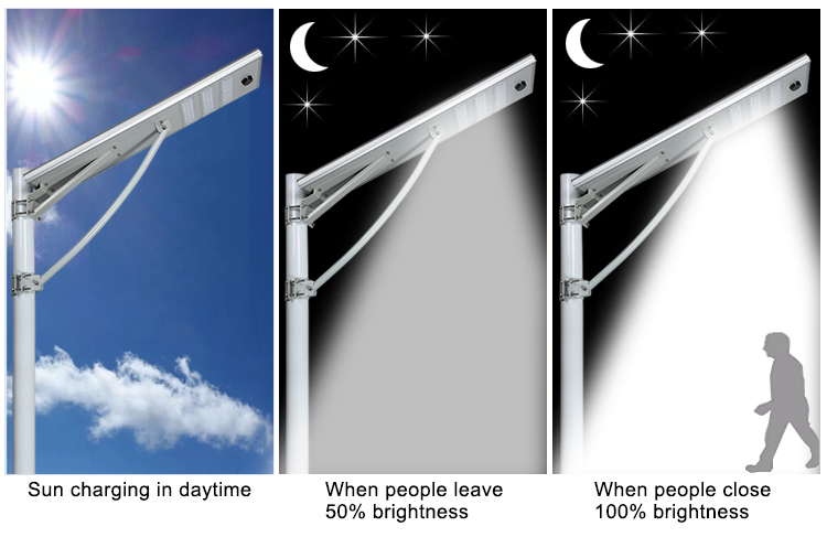 100% brightness when detect people, 30% brightness when normal lighting for energy saving