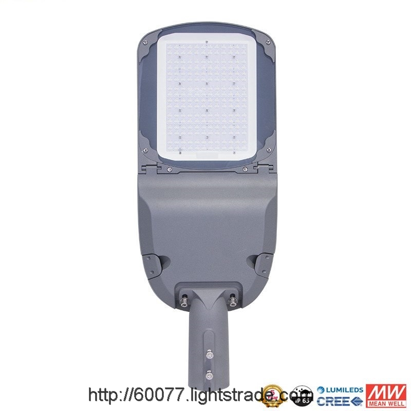 China high lumen 50W 100W 150W 200W LED street light, with die-casting aluminum body, adjustable spigot, IP65 water proof, Meanwell/Philips driver, Philips chips, 160lm/w, China best price and quality outdoor LED street light.