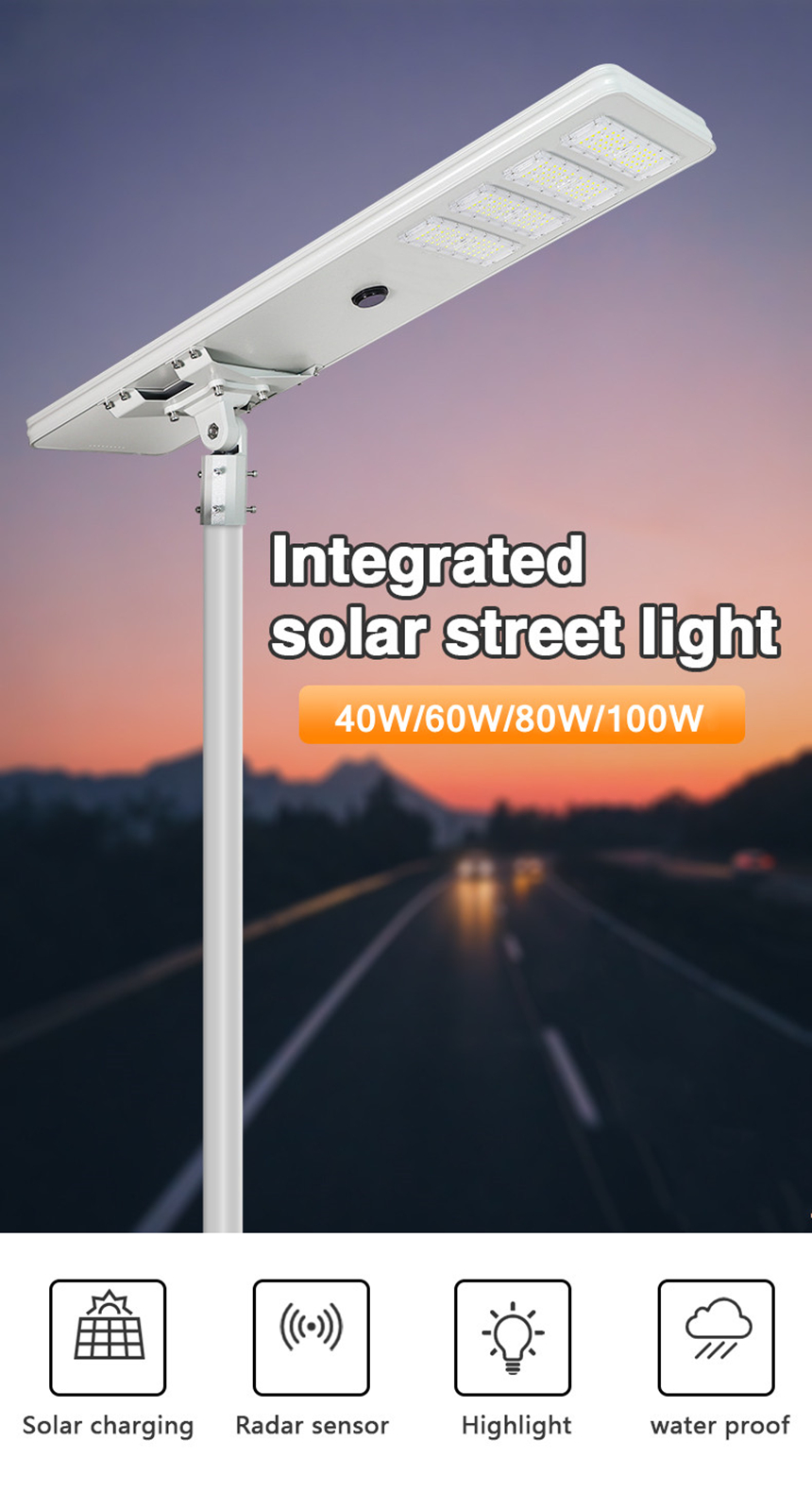 Key features for China Factory wholesale all in one solar street light 40W 60W 80W 100W