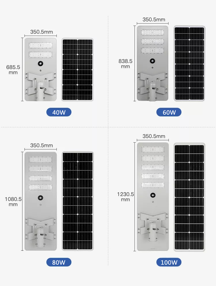 Product size for China Factory wholesale all in one solar street light 40W 60W 80W 100W