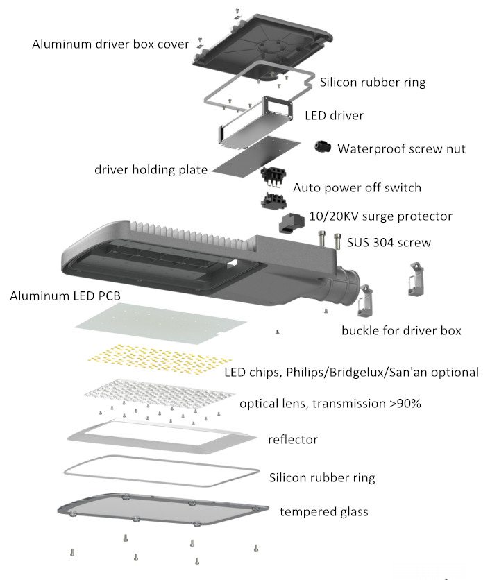 Key features for Factory Direct China Supplier Aluminum 100W 150W 200W 250W LED Street Light.