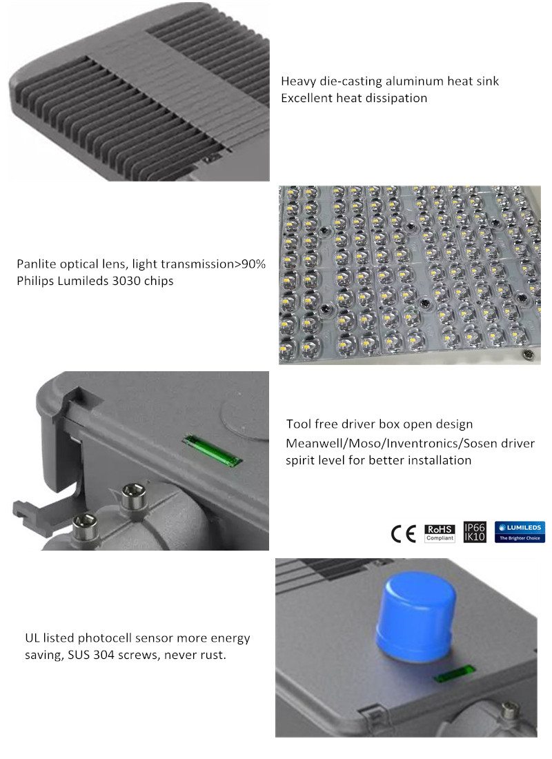 Product Features for Factory Direct China Supplier Aluminum 100W 150W 200W 250W LED Street Light