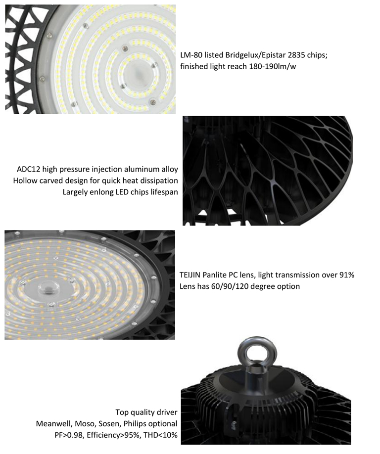Key features for  for 100w 150w 200w 240w UFO LED high bay light for factory warehouse lighting