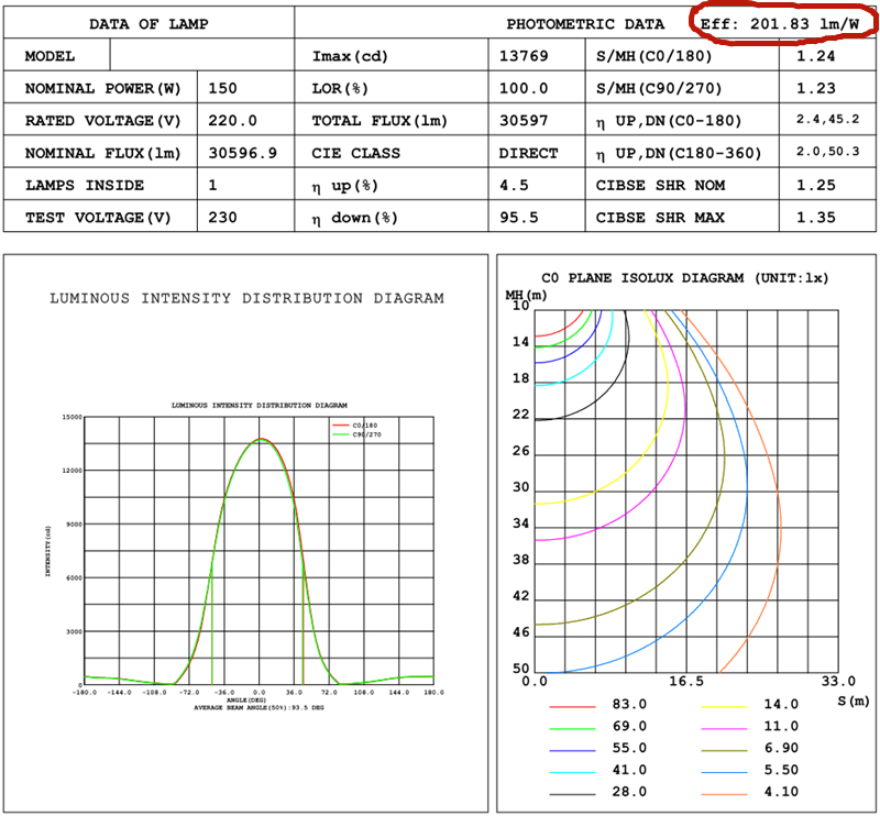 Luminaire efficiency: 180-190lm/w