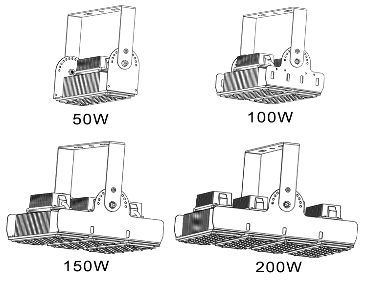 Product Appearance Diagram of 50-200W Flood lights